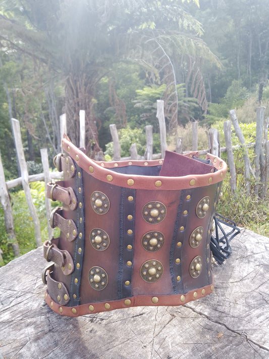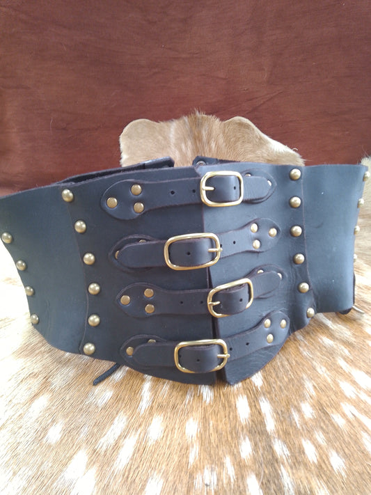 Leather Cincher - Black and Domed Brass