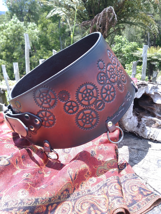 Heavy leather armor and wide belts. Surprisingly comfortable though!