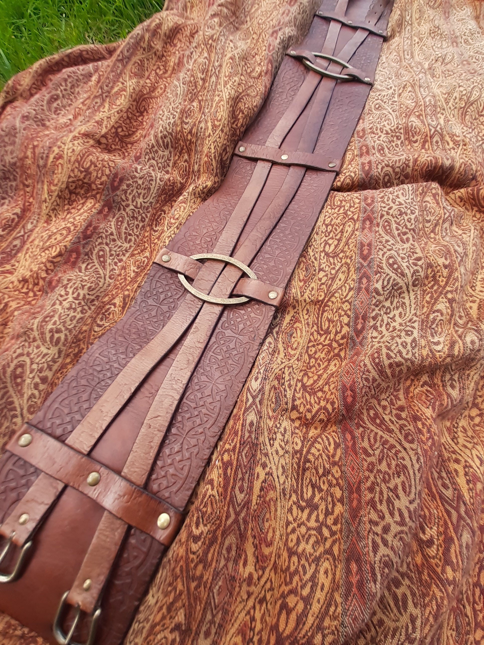 Super wide double buckled hero style belt with ring detail. Removable over belts let you easily add all the pouches, scabbards and other accoutrement you need.